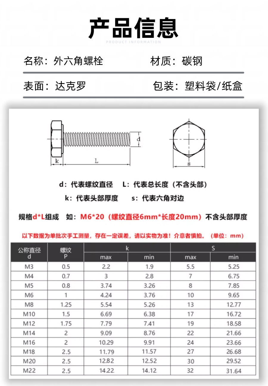 达克罗外六角螺栓介绍