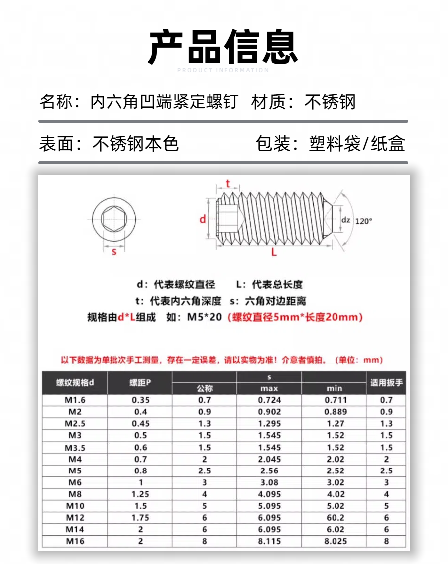 内六角凹端紧定螺钉介绍