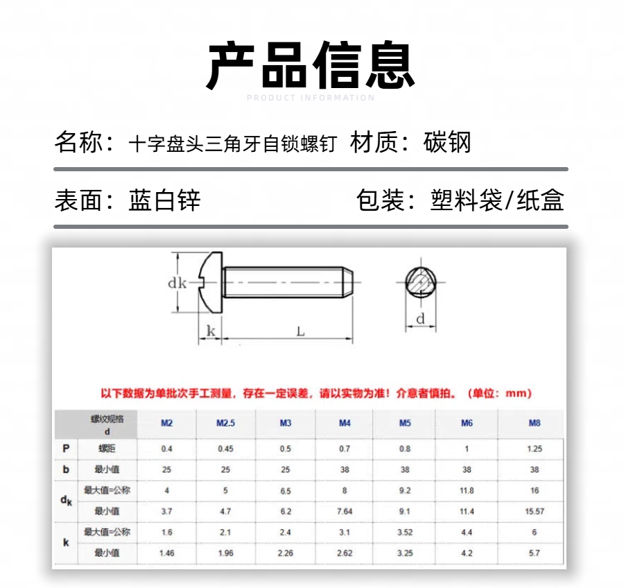 蓝白锌十字盘头三角牙自锁螺钉介绍