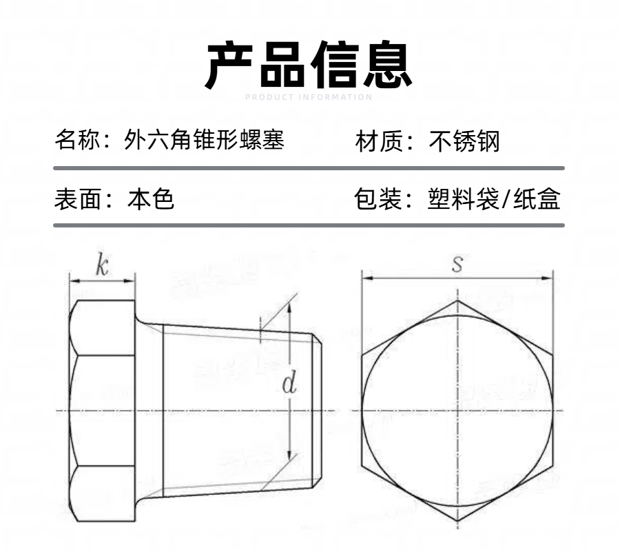 Q618B六角头锥形螺塞介绍