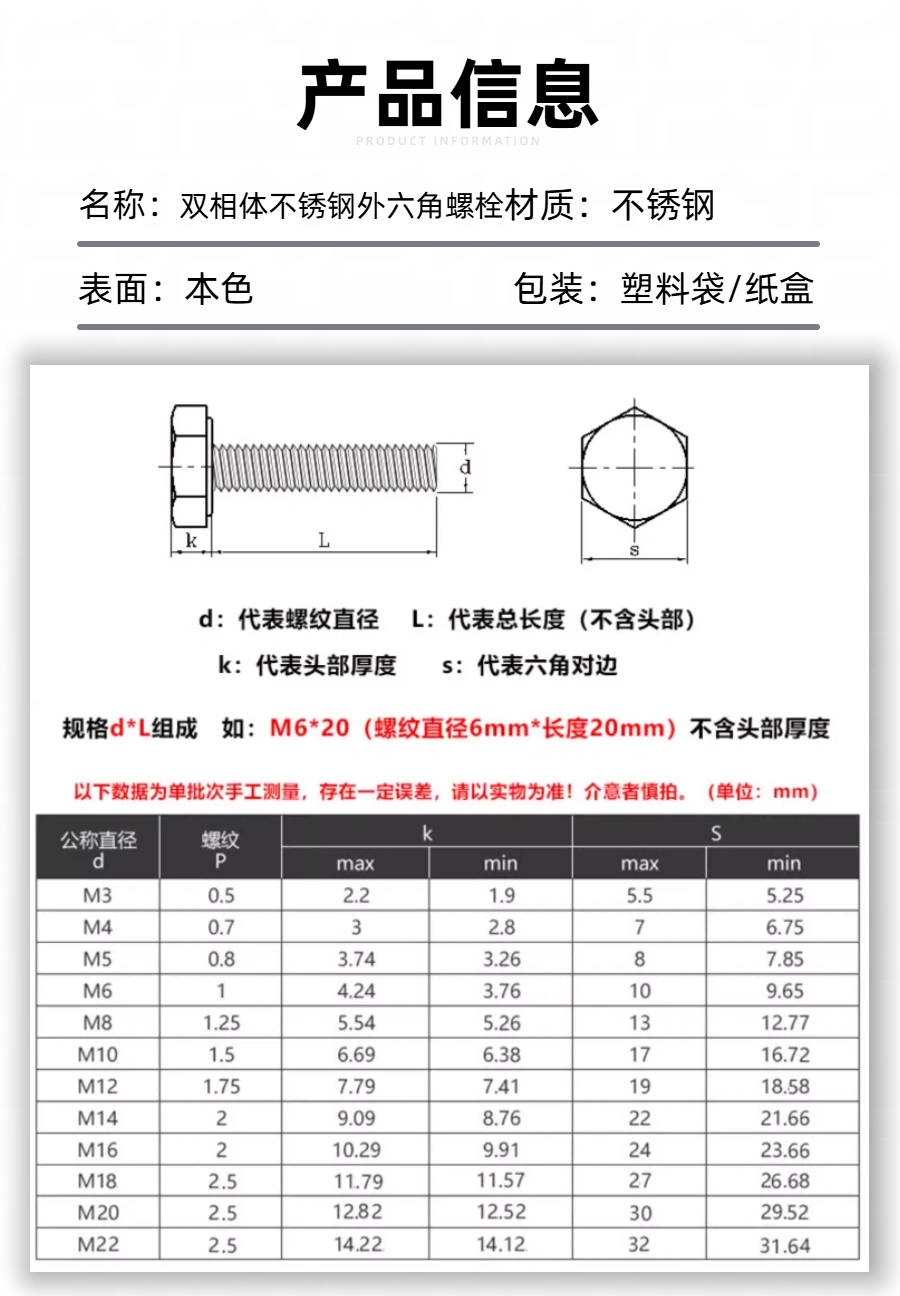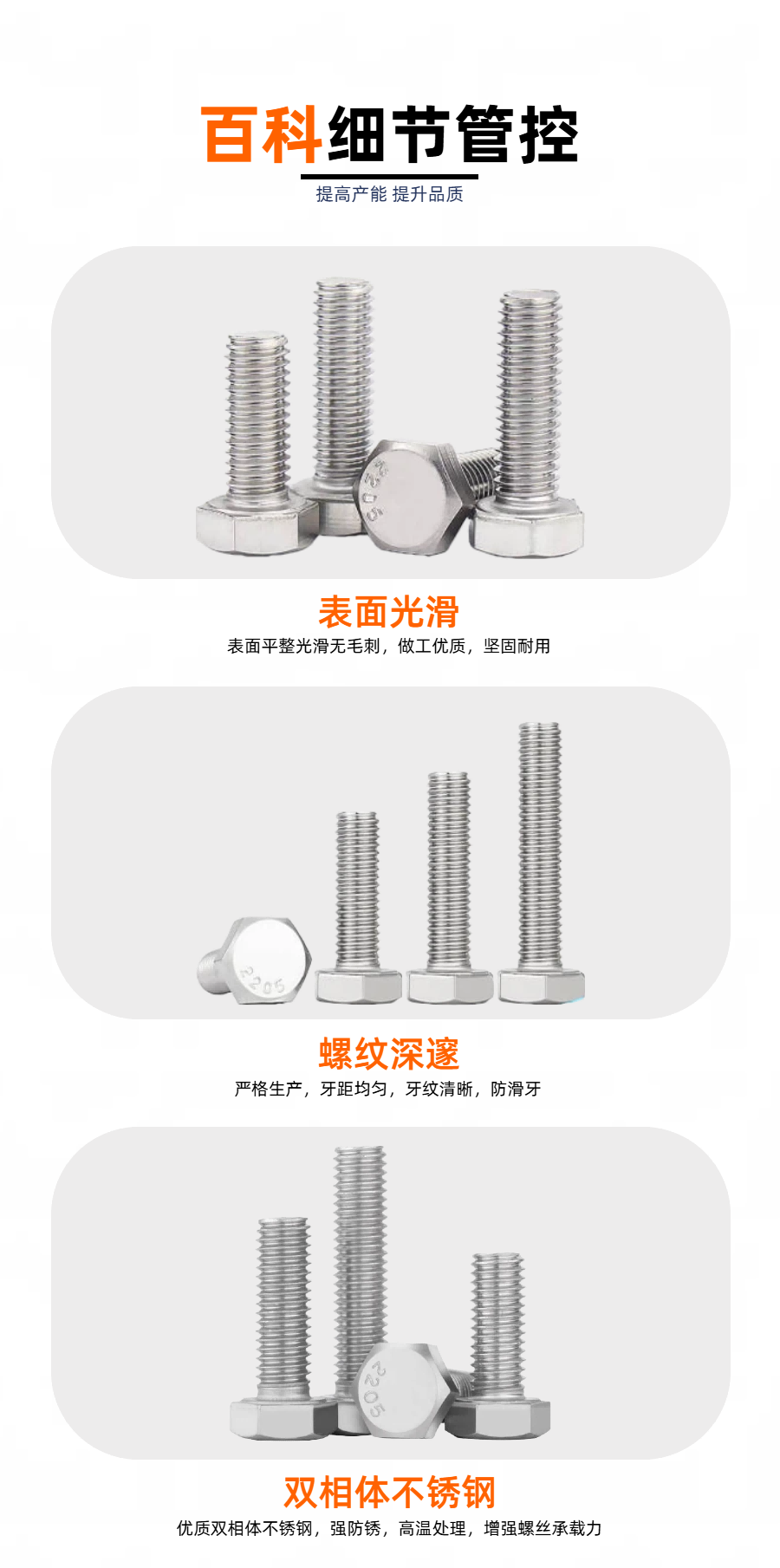 2205双相体不锈钢外六角螺栓介绍