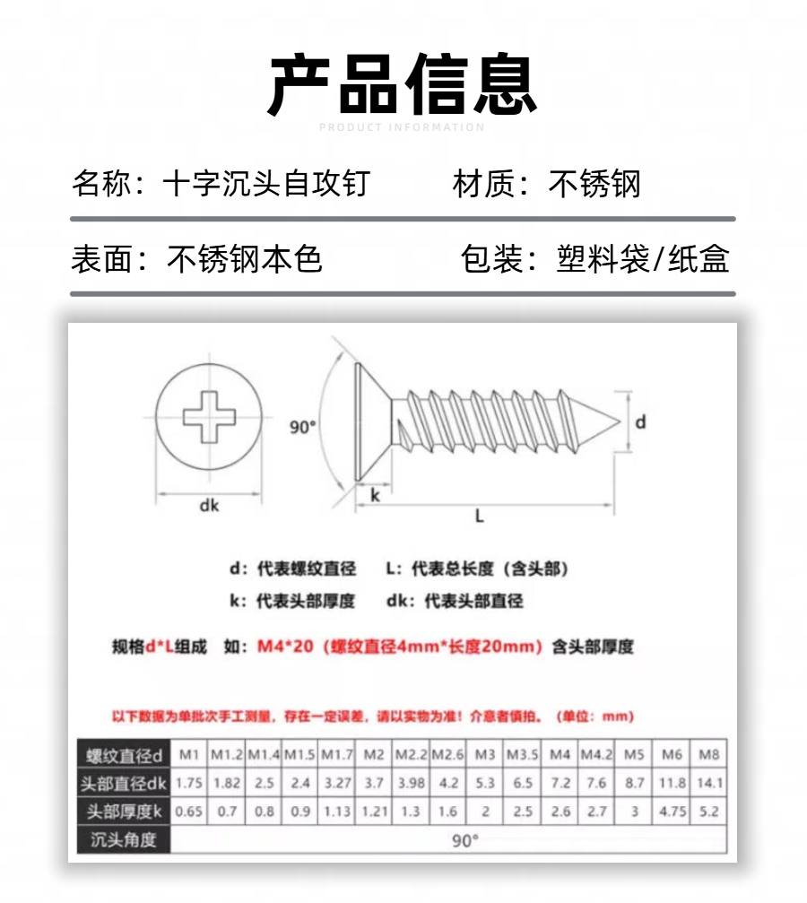 十字沉头自攻螺钉介绍